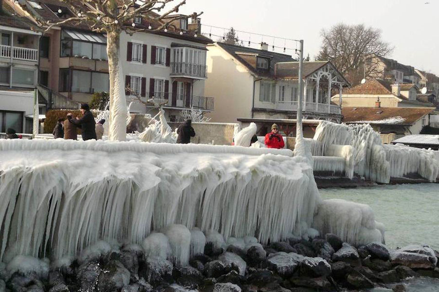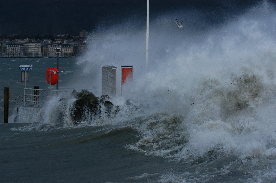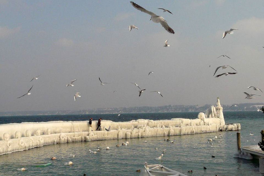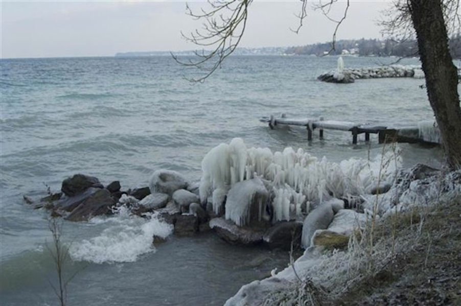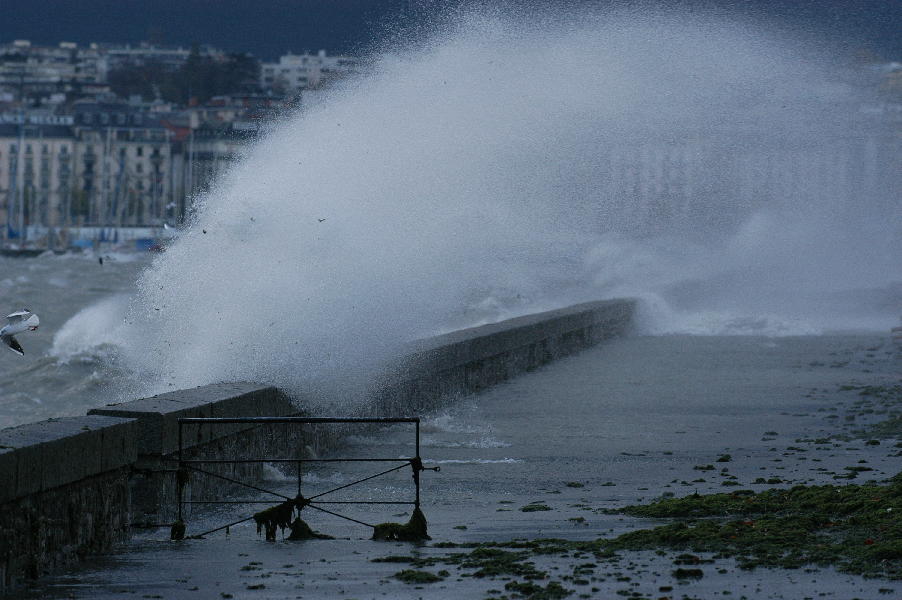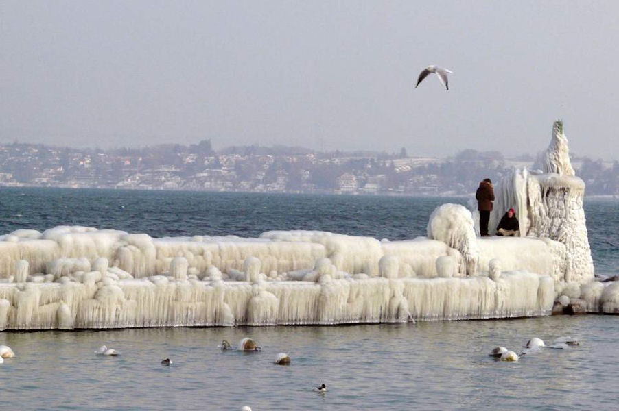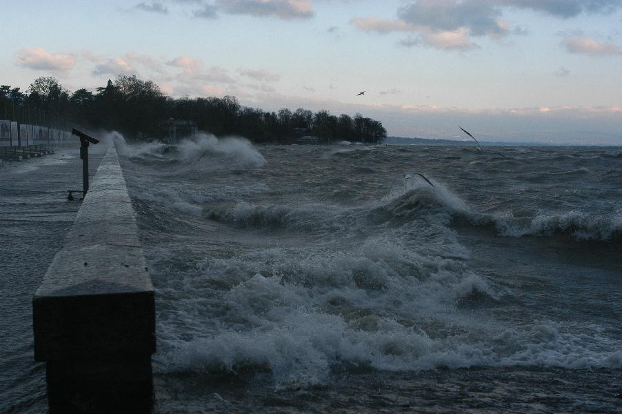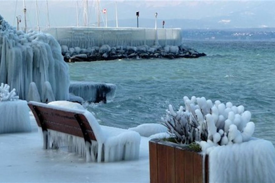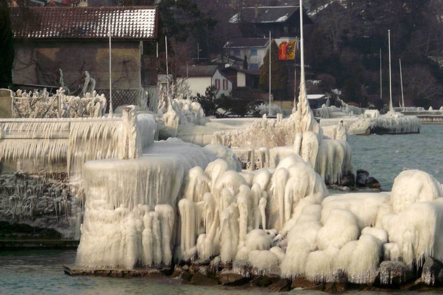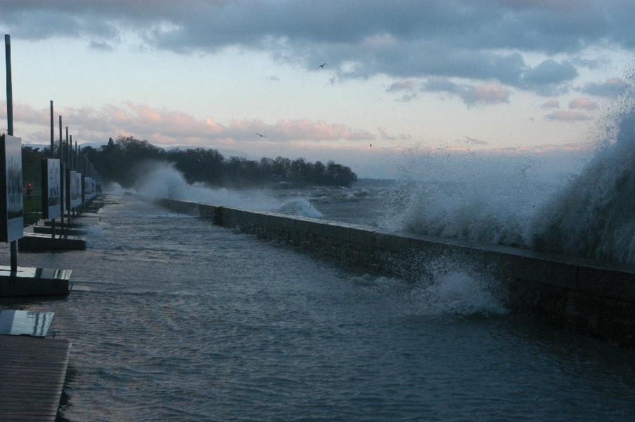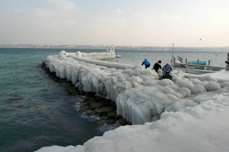 le léman en colère - tempête sur le lac - glace sur les berges après une tempête