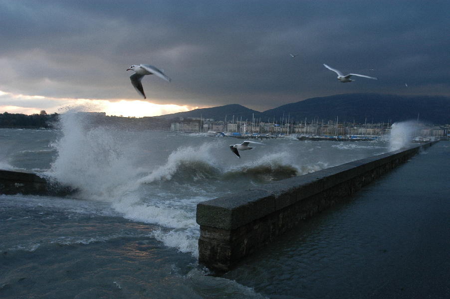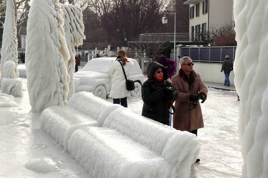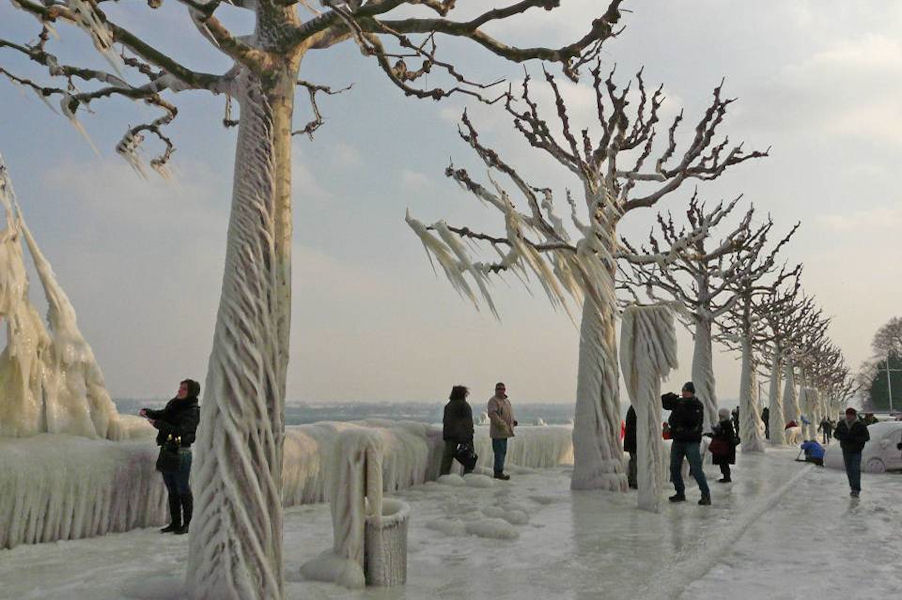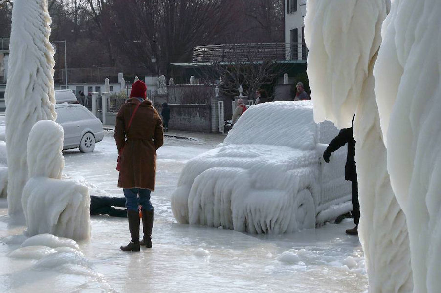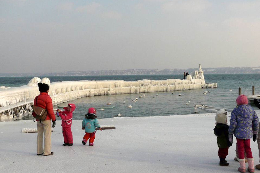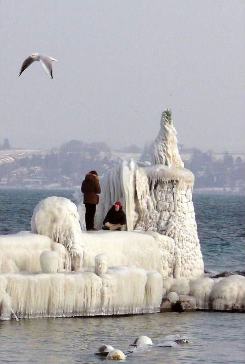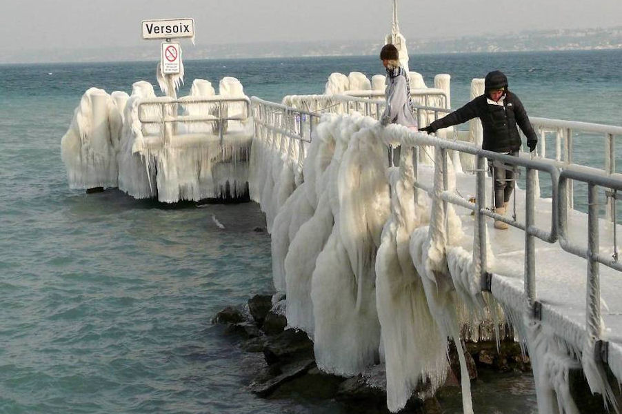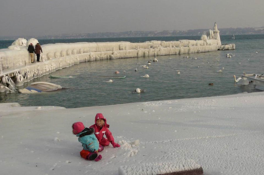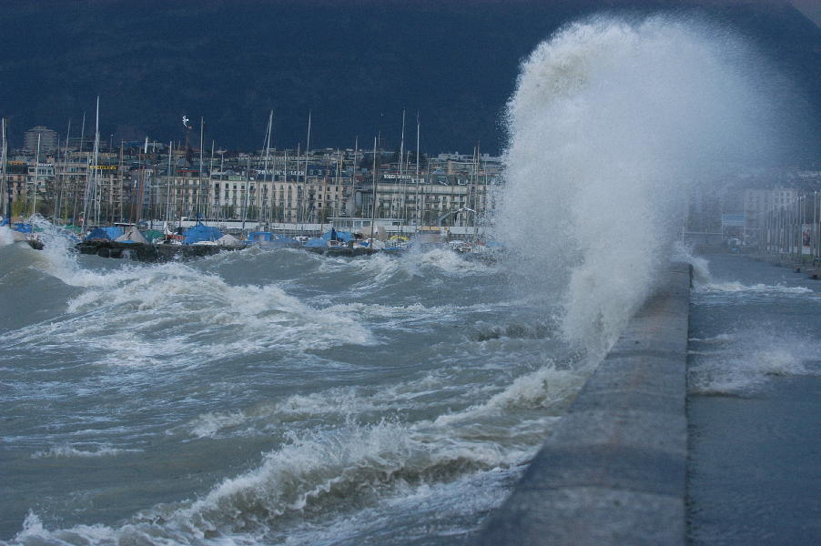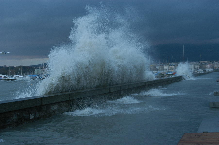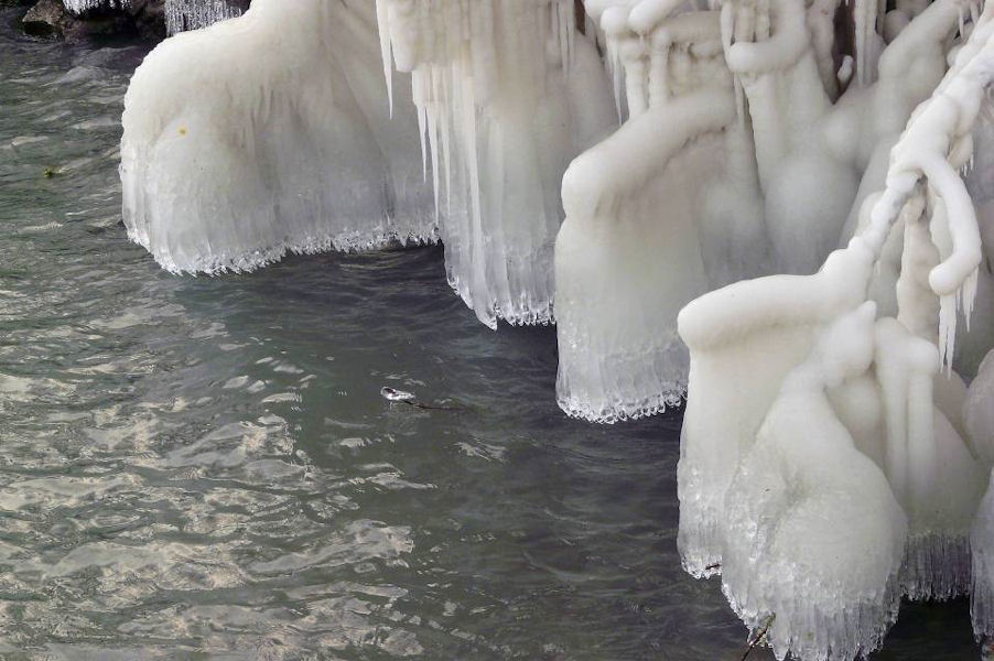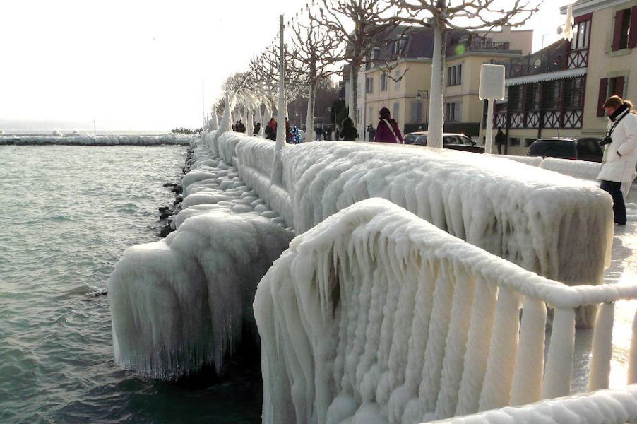 le léman en colère - tempête sur le lac - glace sur les berges après une tempête