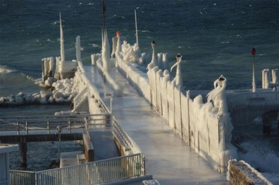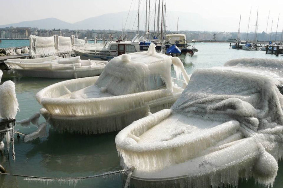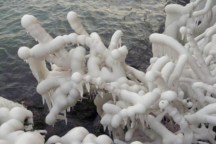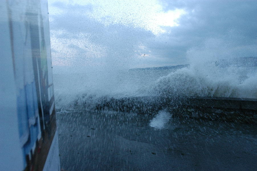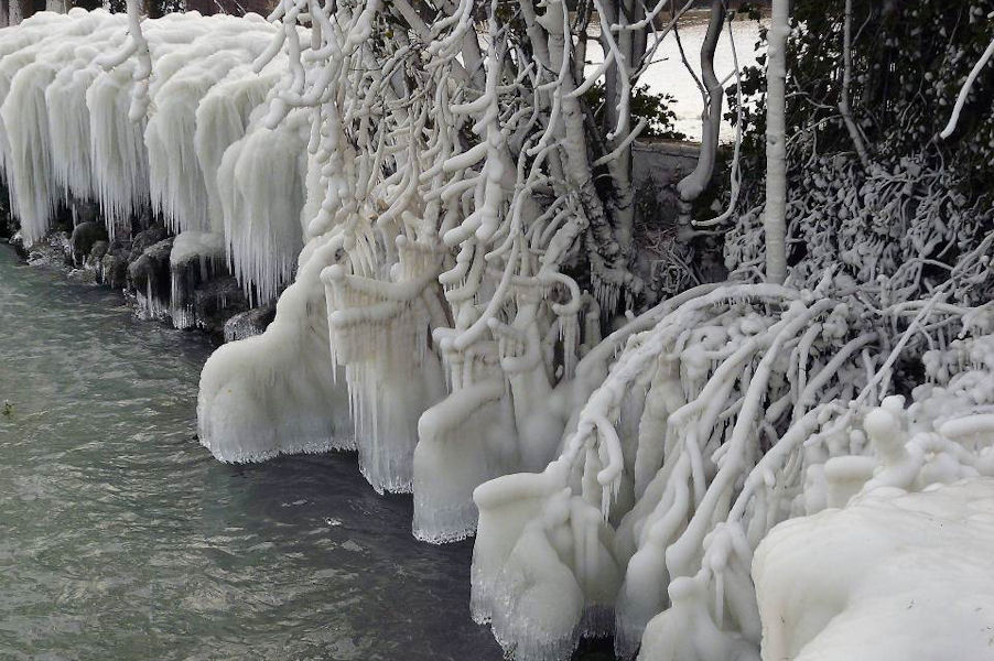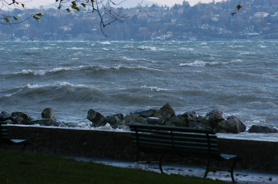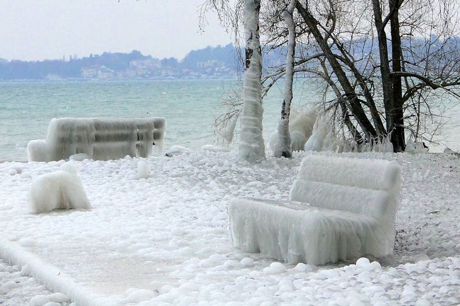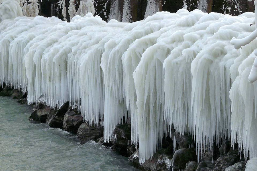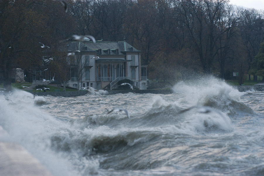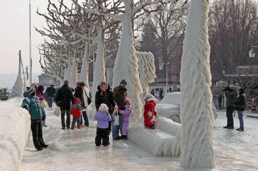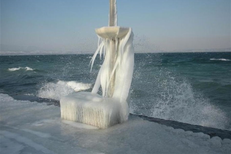 le léman en colère - tempête sur le lac - glace sur les berges après une tempête